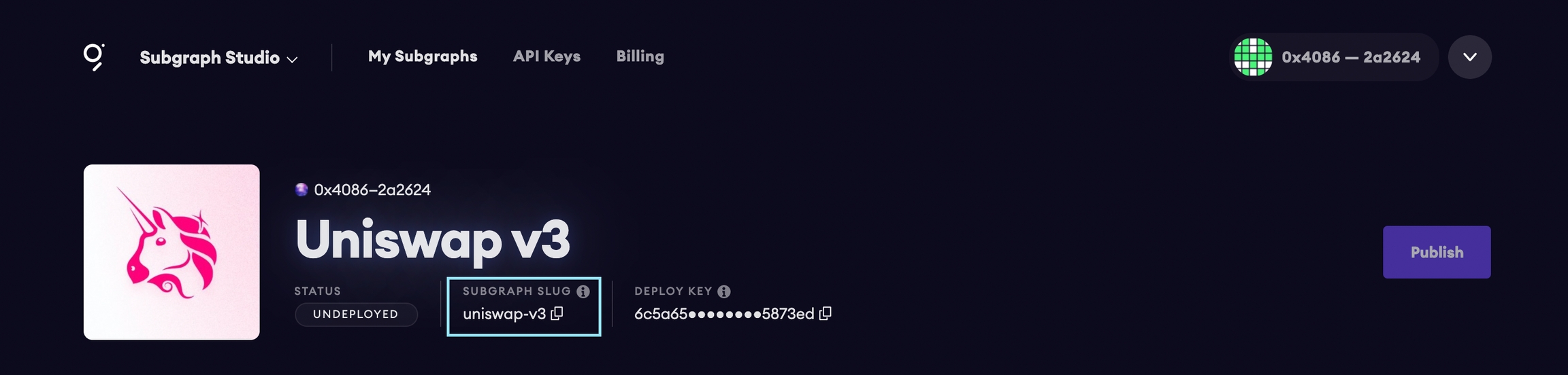 Before being able to deploy your subgraph to Subgraph Studio, you need to login into your account within the CLI. To do this, you will need your deploy key that you can find on your "My Subgraphs" page or your subgraph details page.