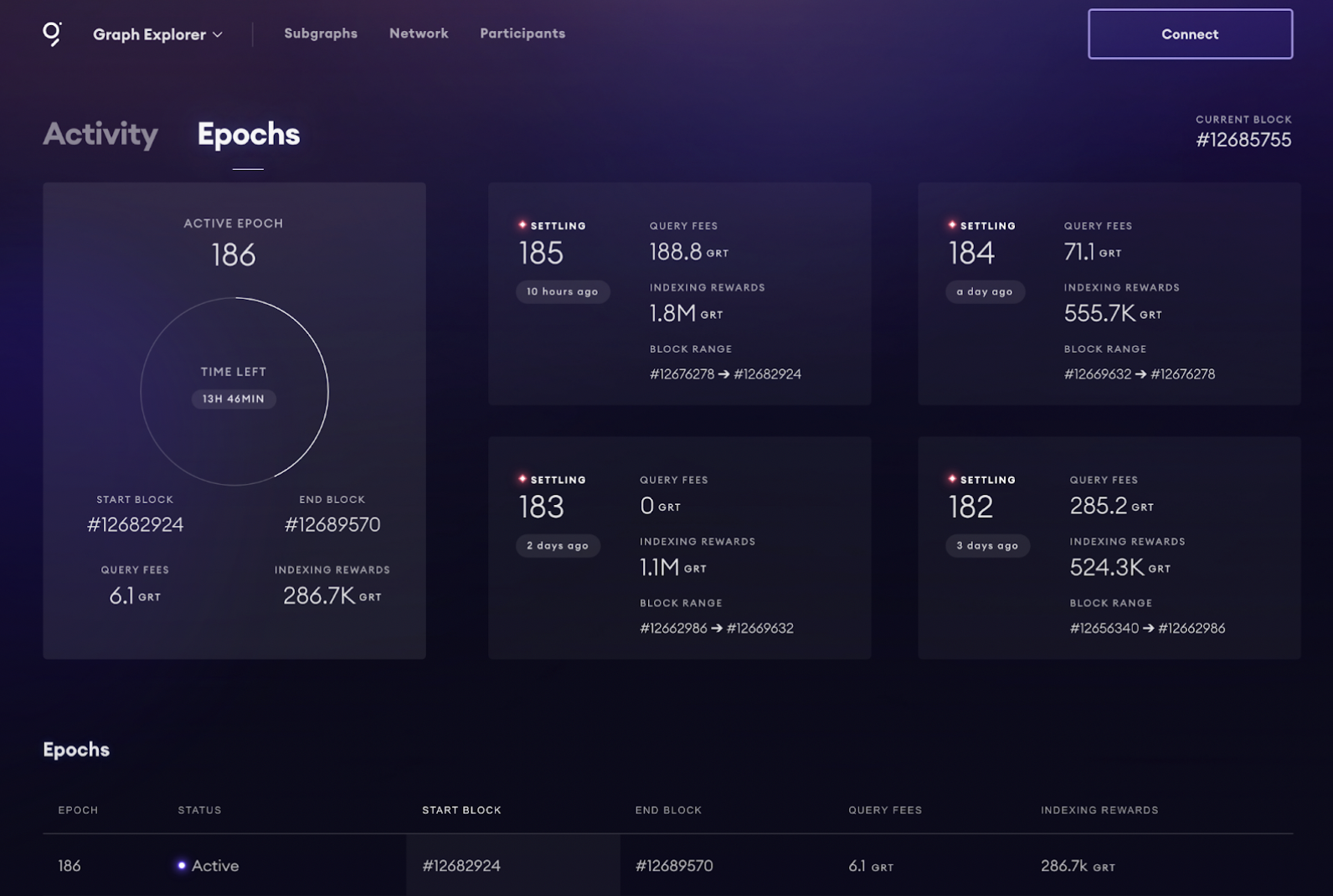 The active epoch is the one in which Indexers are currently allocating stake and collecting query fees
