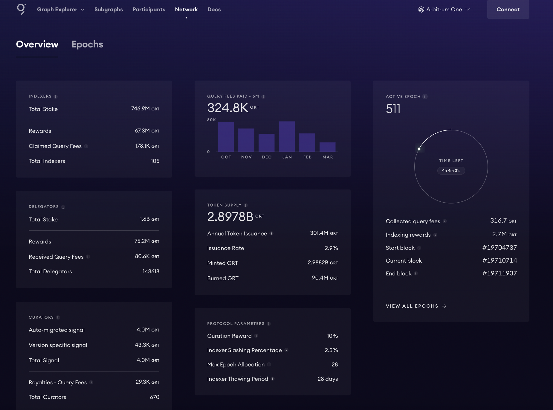 In the Network section, you will see global KPIs as well as the ability to switch to a per-epoch basis and analyze network metrics in more detail. These details will give you a sense of how the network is performing over time.